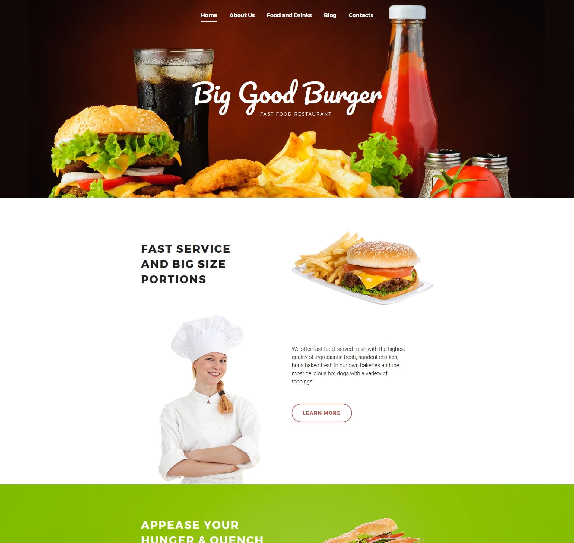 Our template comes equipped with features perfectly suited for fast food restaurants. Display your enticing menu, promote special deals, feature customer testimonials, and provide details about your restaurant’s location and hours. All these in a user-friendly and appealing layout.