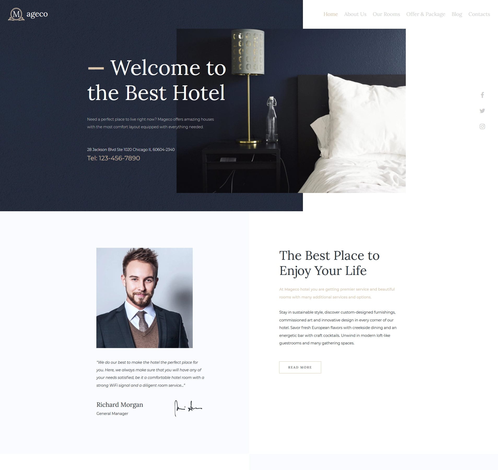 Featuring an elegant layout and sophisticated design, this template encapsulates the essence of your hotel’s brand. The use of high-quality visuals and a harmonious colour scheme instantly immerses potential guests in the luxury of your accommodations.