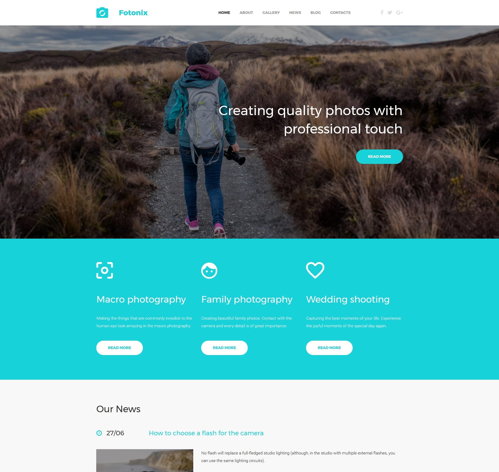 The Photographer Portfolio Template has been crafted with an in-depth understanding of a photographer’s needs. It features an expansive portfolio section where you can exhibit your best work, spanning a range of genres and themes.
