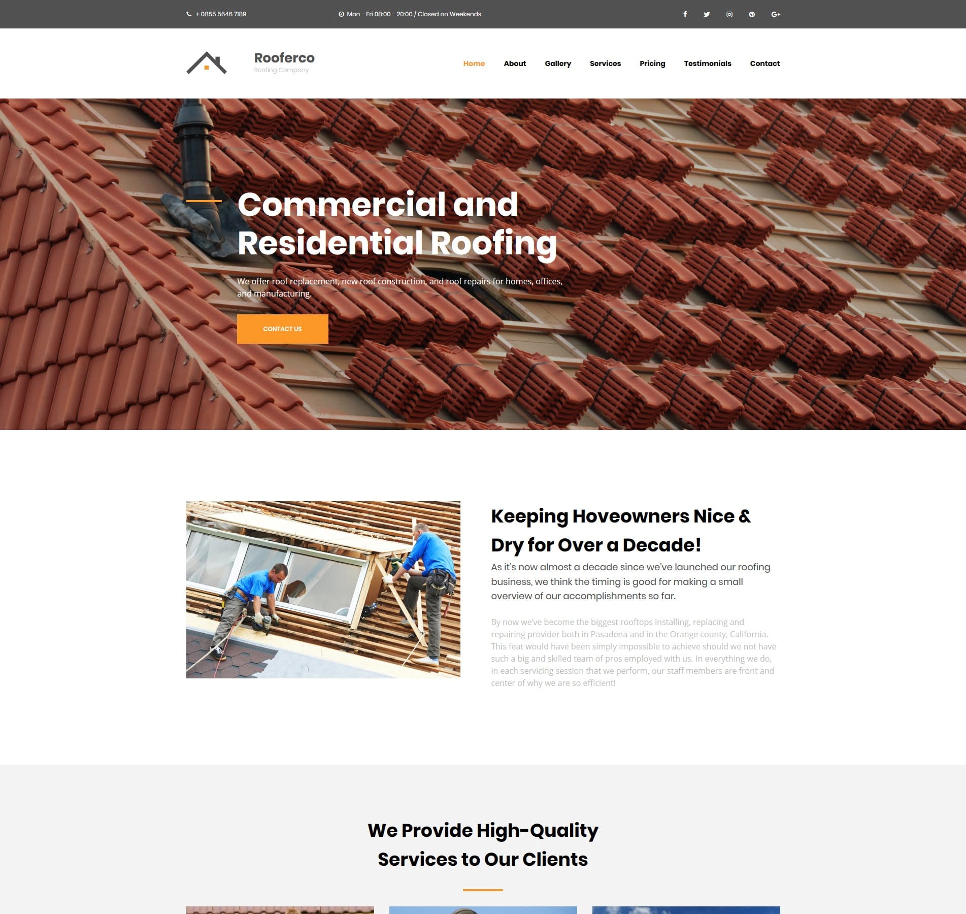 Service Showcase: Highlight your roofing services in style, whether it’s roof repairs, replacements, or new installations. The dedicated sections ensure that your offerings get the spotlight they deserve.